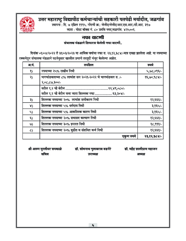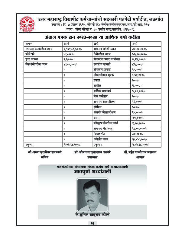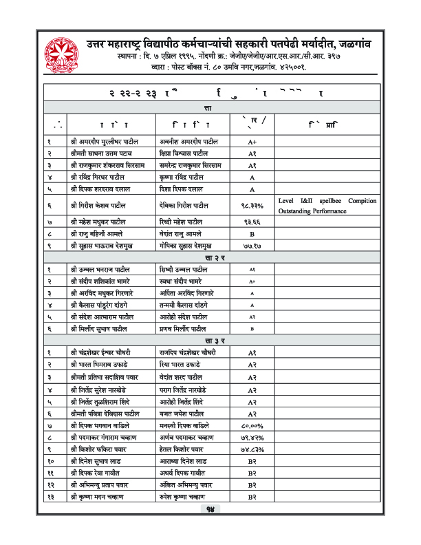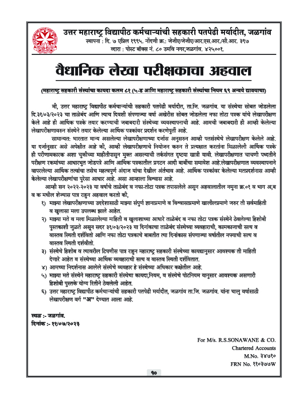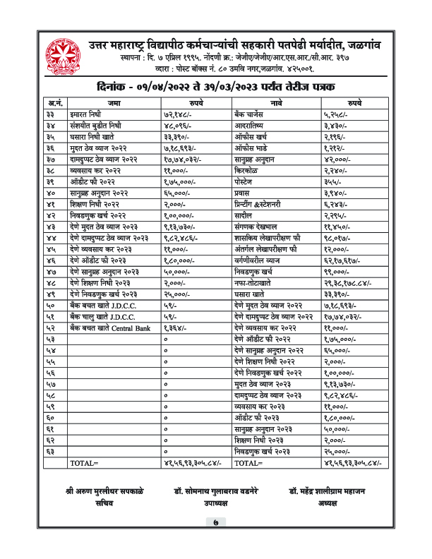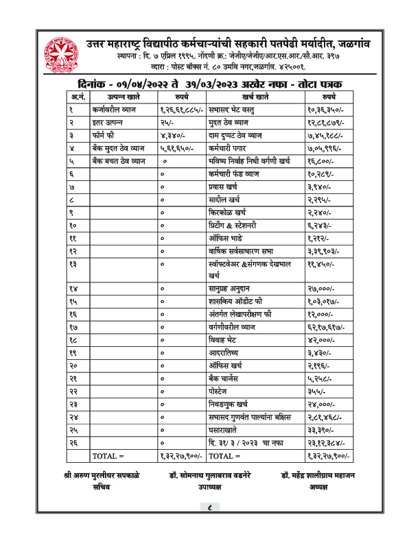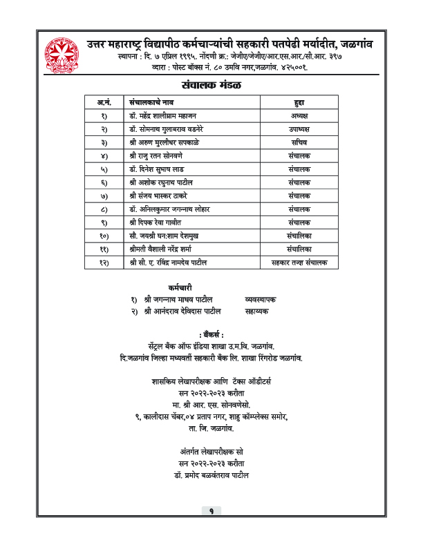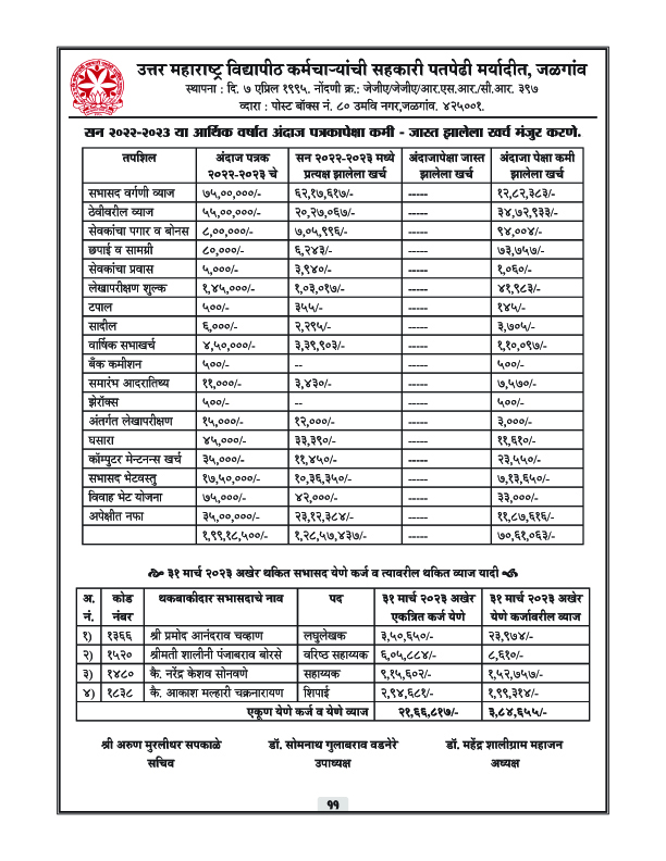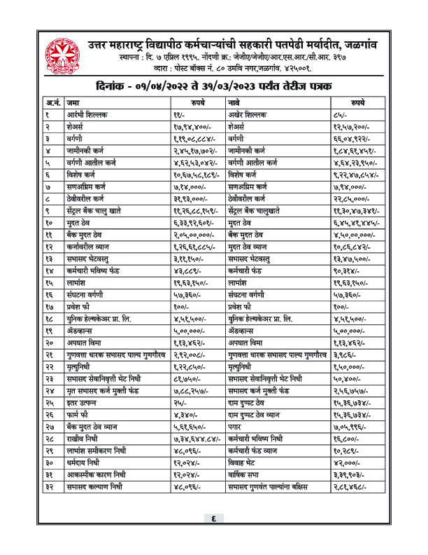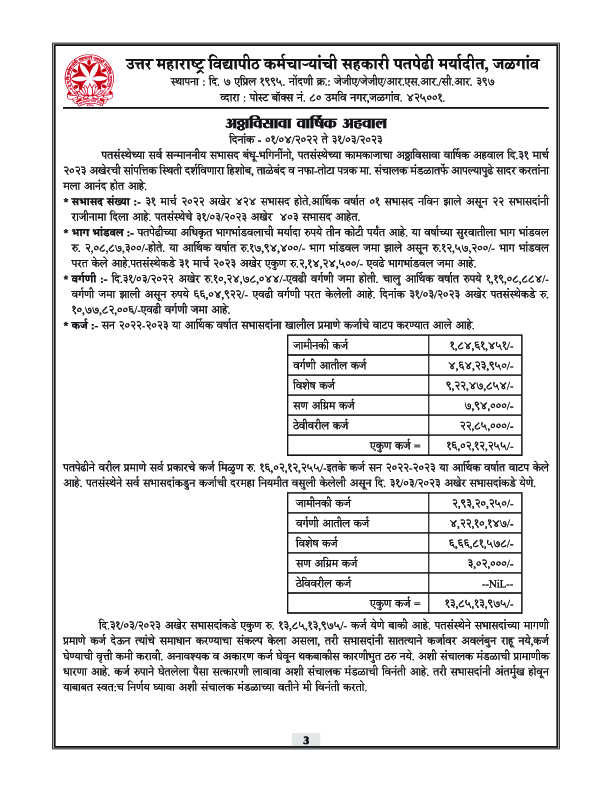 पतपेढीचा वार्षिक अहवाल – 2023